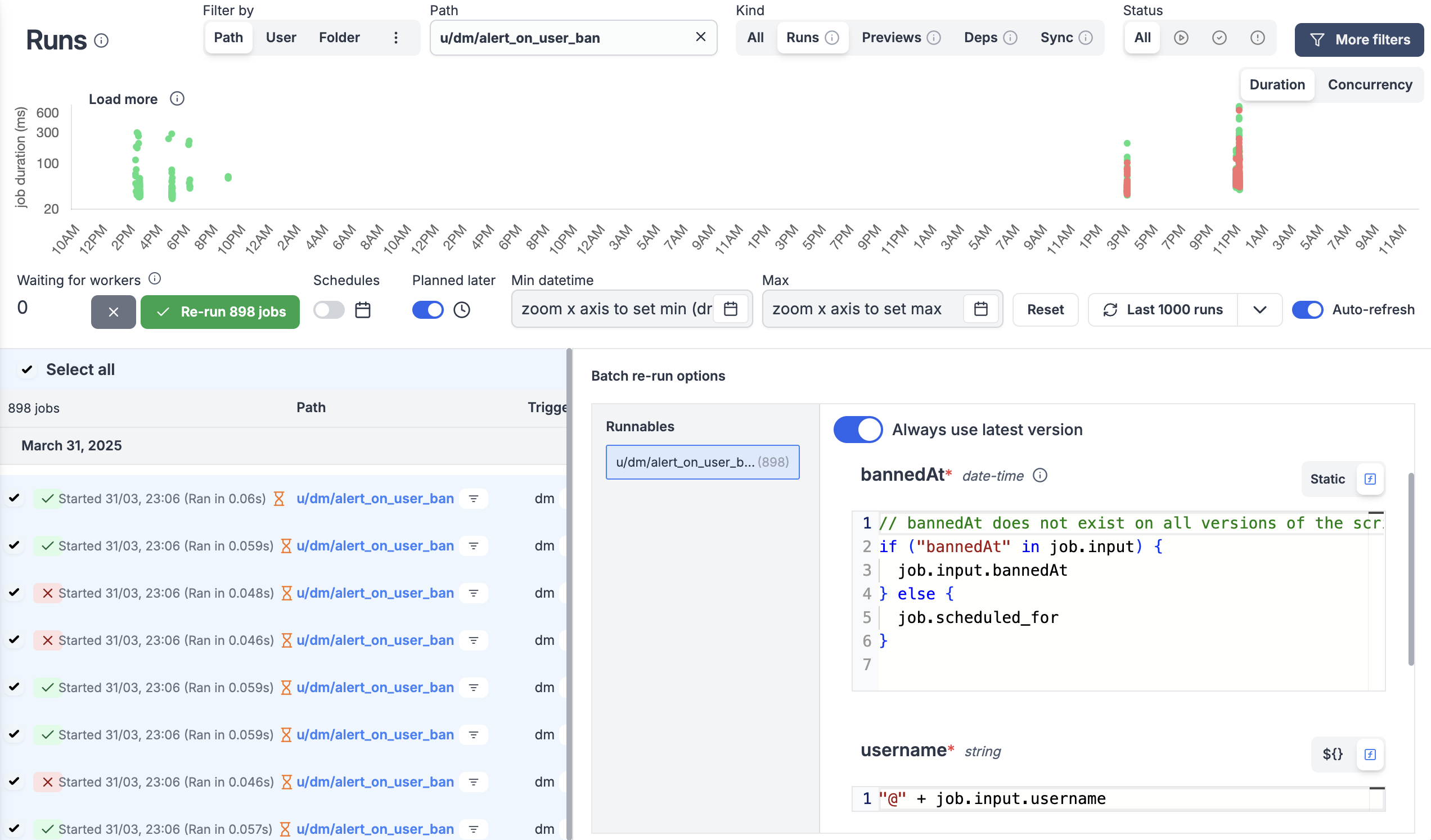 - Large job results: top 10 biggest result payloads (> 1 KB) with configurable scan depth (10k–500k jobs).