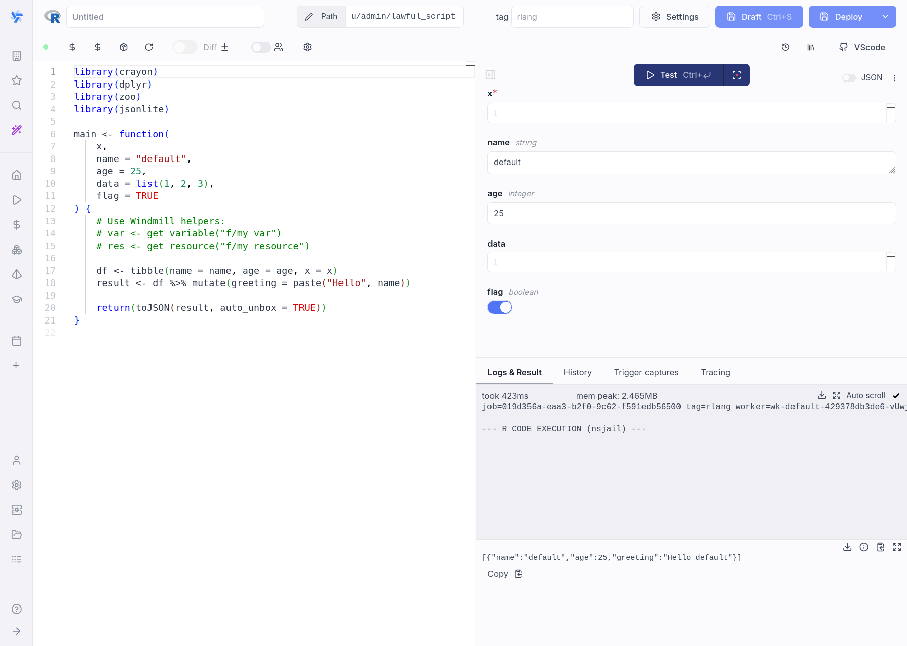 - Write your Windmill script in R.