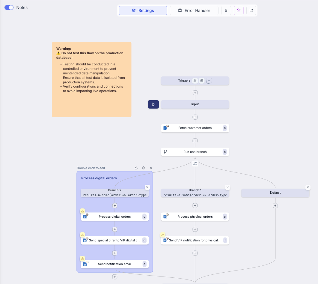- By default, each step is set to "Stop on error and propagate error up".